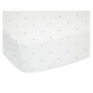 Product Description : This luxurious plush 100% cotton "jersey knit" sheet is what your baby deserves to sleep on. Our sheets are made of the highest quality fabric that's measured at 150 gsm (grams per square meter). That means these are softer than your favorite t-shirt, and as soft as flannel. Sheets are made with deep pockets and are elasticized around the entire edge which prevents it from slipping off the mattress, thereby keeping your baby safe. These sheets are so durable that they will last all through your baby's growing years. We're called sheetworld because we produce the highest grade sheets on the market today. Features a tiny blue pindot printed on a solid white background.