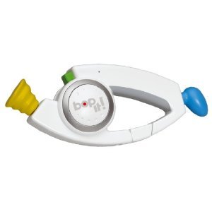 Product Description : Bop It Test your skill with this mini working Bop It! Pull the blue knob to wake up Bop It, then press Bop It button to start the game. Bop It will randomly command 4 actions: Bop It, Twist It, Pull It and the newest action Shout It. Yell out anything you like for Shout It and make sure you respond quickly and correctly to all commands or you'll be out and have to start again. Leave Bot It alone for several minutes and the game goes to sleep. Wake back up by pulling the blue knob and the fun starts all over again.