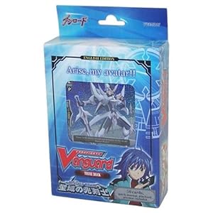 Product Description : This deck contains all the primary items you need to play the game. You can also mix the cards with ones that you get from the boosters in order to play the game. 4pc TD01/001EN Crimson Butterfly, Brigitte 1pc TD01/002EN Knight of Conviction, Bors 2pc TD01/003EN* Solitary Knight, Gancelot 4pc TD01/004EN* Knight of Silence, Gallatin 1pc TD01/005EN* Blaster Blade 3pc TD01/006EN Knight of the Harp, Tristan 4pc TD01/007EN* Covenant Knight, Randolf 4pc TD01/008EN* Little Sage, Marron 2pc TD01/009EN* Wingal 4pc TD01/010EN Starlight Unicorn 4pc TD01/011EN Knight of Rose, Morgana 1pc TD01/012EN Stardust Trumpeter 4pc TD01/013EN Bringer of Good Luck, Epona 4pc TD01/014EN* Yggdrasil Maiden, Elaine 4pc TD01/015EN* Weapons Dealer, Govannon 4pc TD01/016EN* Flogal